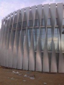 由于其加工難度大,能生產(chǎn)雙曲面板的廠家很少, 很多工程只能放棄原有設(shè)計方案,導(dǎo)致幕墻的整體效果難以準確表達出設(shè)計理念。扭曲鋁單板采用優(yōu)質(zhì)鋁板加工而成,表層采用氟碳噴涂,不受紫外線、溫度、氣溫和大氣侵蝕,更具有良好的抗彎曲度及優(yōu)良的抗風壓性能,并且能夠發(fā)揮其特點, 二次開發(fā)使用。