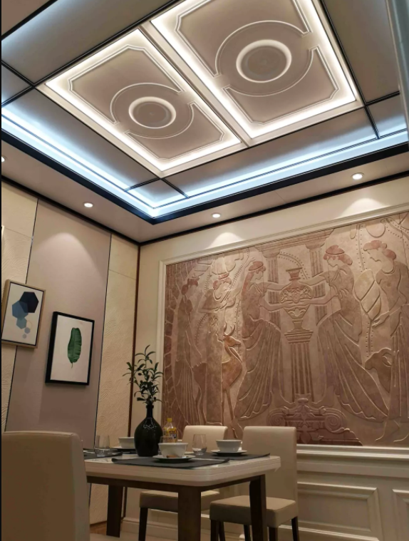 大規(guī)格安裝,從視覺上給人一種延伸擴(kuò)大的感覺,使空間更顯開闊,成為不少別墅豪宅的首選。在產(chǎn)品設(shè)計上,大規(guī)格吊頂大板因為單片面積較大,可以承載的紋理設(shè)計元素更多,因此裝修出來的整體空間紋理圖案效果更加完整和立體,板面所體現(xiàn)的細(xì)節(jié)也更加豐富。