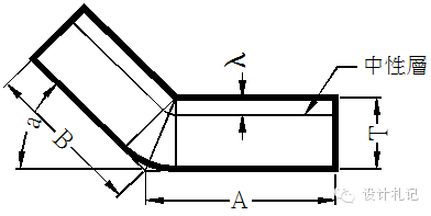 4.2 R=0, θ=90° (T≧1.2,含1.2mm) L=(A-T)+(B-T)+K =A+B-2T+0.5T 上式中取:λ=T/3 K=λ*π/2 =T/3*π/2 =0.5T | ||