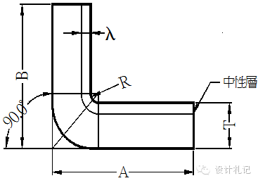 板料在彎曲過程中外層受到拉應(yīng)力,內(nèi)層受到壓應(yīng)力,從拉到壓之間有一既不受拉力又不受壓力的過渡層--中性層,中性層在彎曲過程中的長(zhǎng)度和彎曲前一樣,保持不變,所以中性層是計(jì)算彎曲件展開長(zhǎng)度的基準(zhǔn).中性層位置與變形程度有關(guān),當(dāng)彎曲半徑較大,折彎角度較小時(shí),變形程度較小,中性層位置靠近板料厚度的中心處,當(dāng)彎曲半徑變小,折彎角度增大時(shí),變形程度隨之增大,中性層位置逐漸向彎曲中心的內(nèi)側(cè)移動(dòng).中性層到板料內(nèi)側(cè)的距離用λ表示。