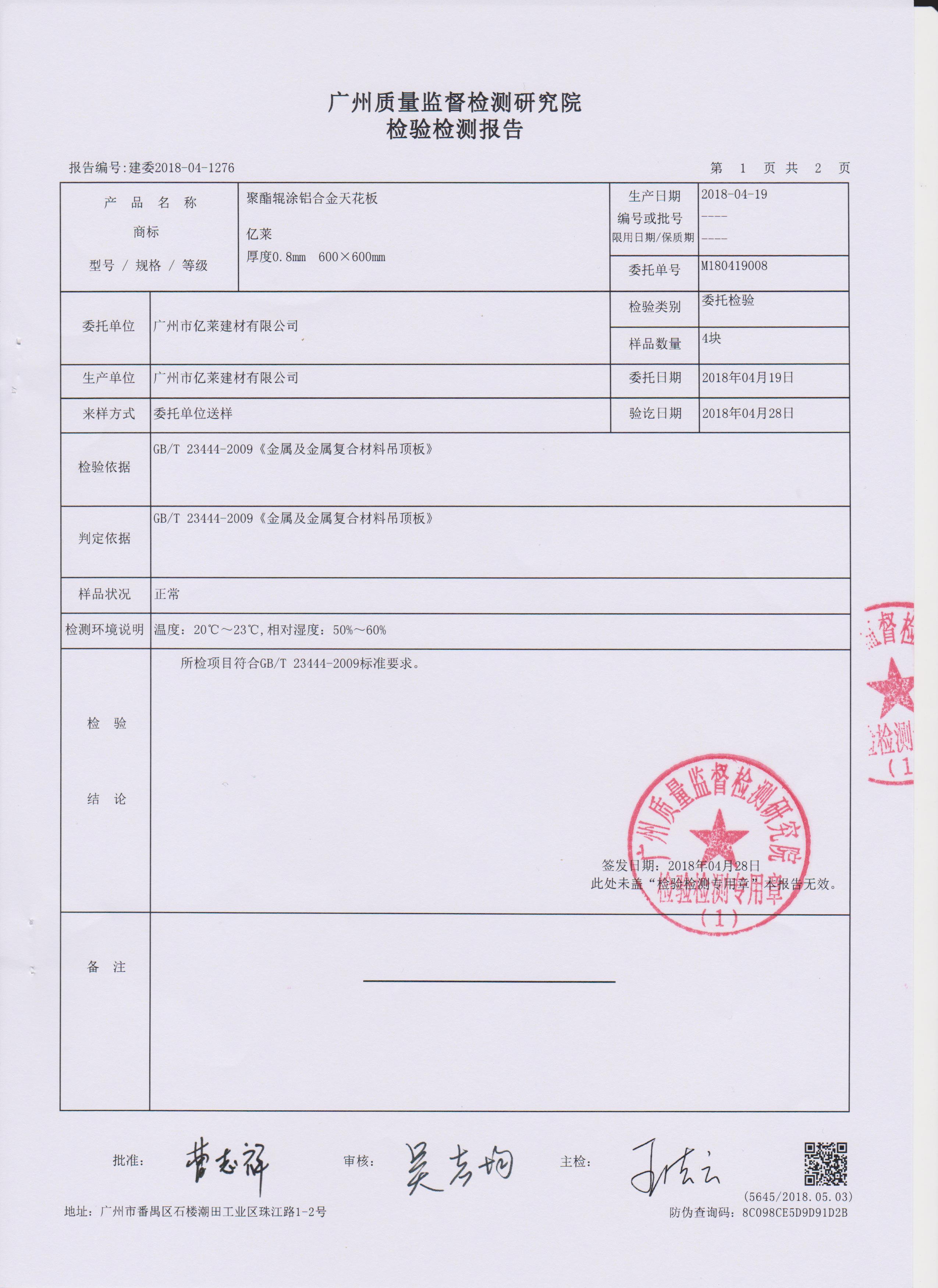 聚酯輥涂鋁合金天花板檢測(cè)報(bào)告